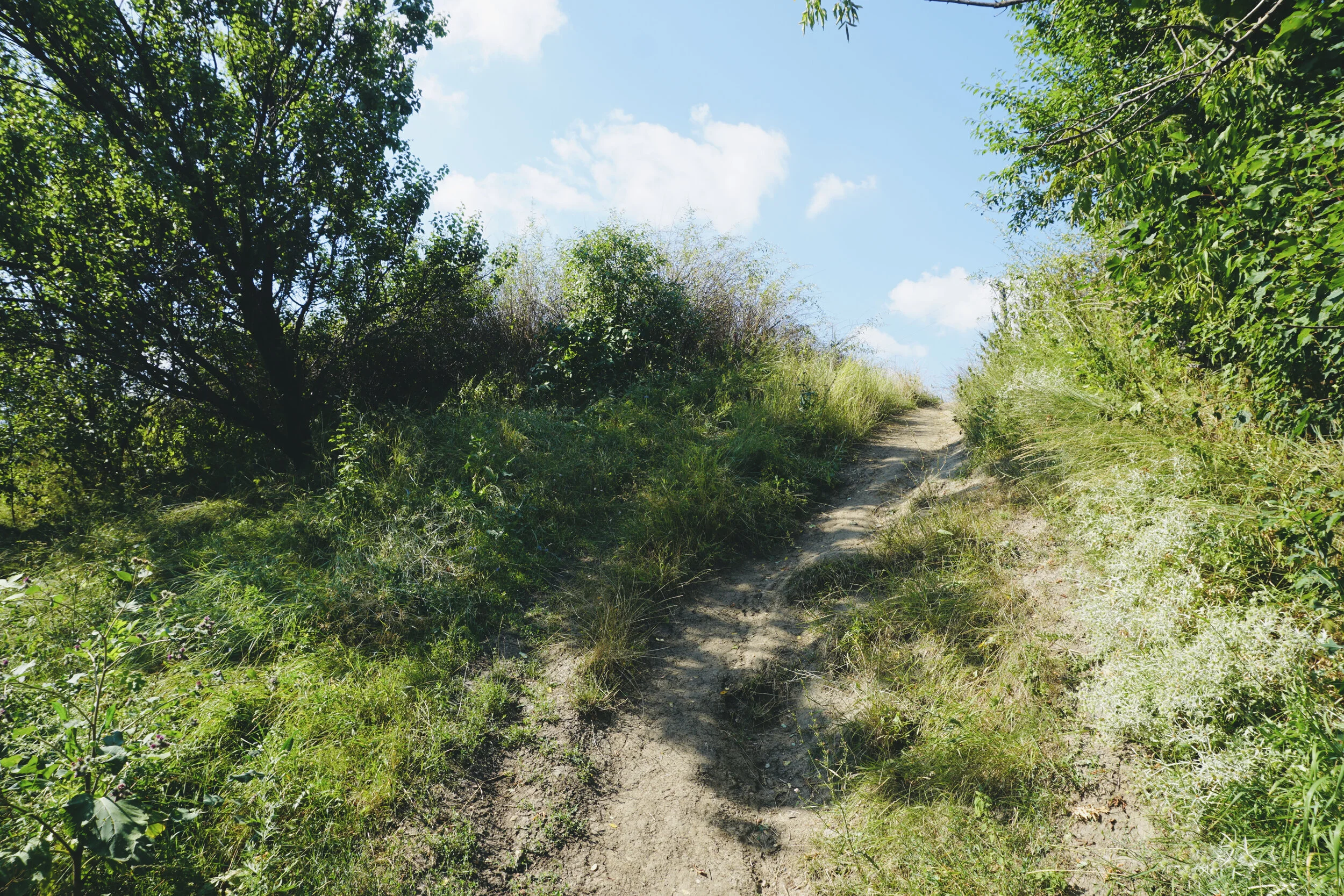 Behind the monument of Mykola Hohol one can find metal stairs, which lead to the top of a hill with a wide view over the city