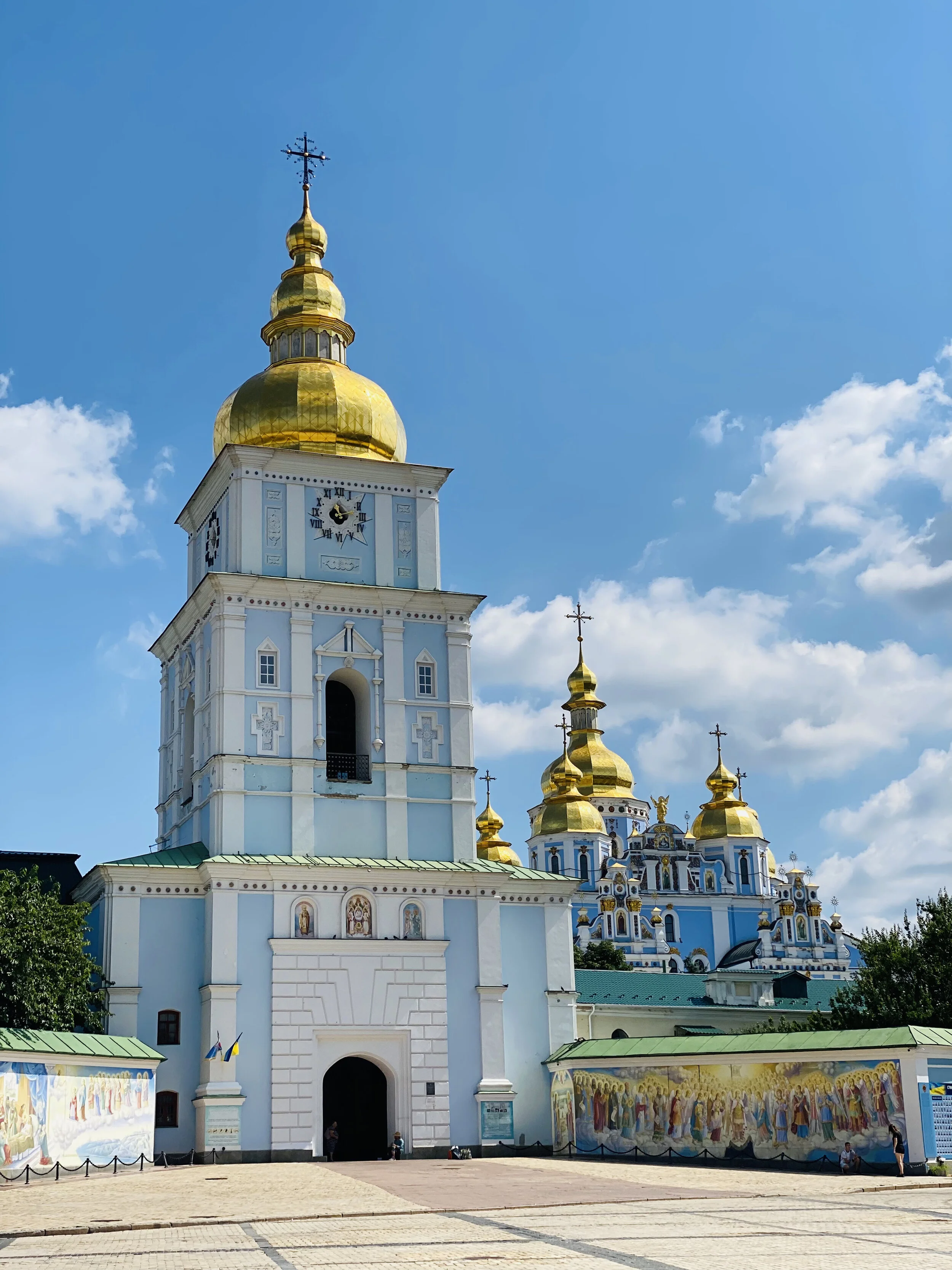 The monastery starts with Mykhailivska square with the ministry of foreign affairs behind it