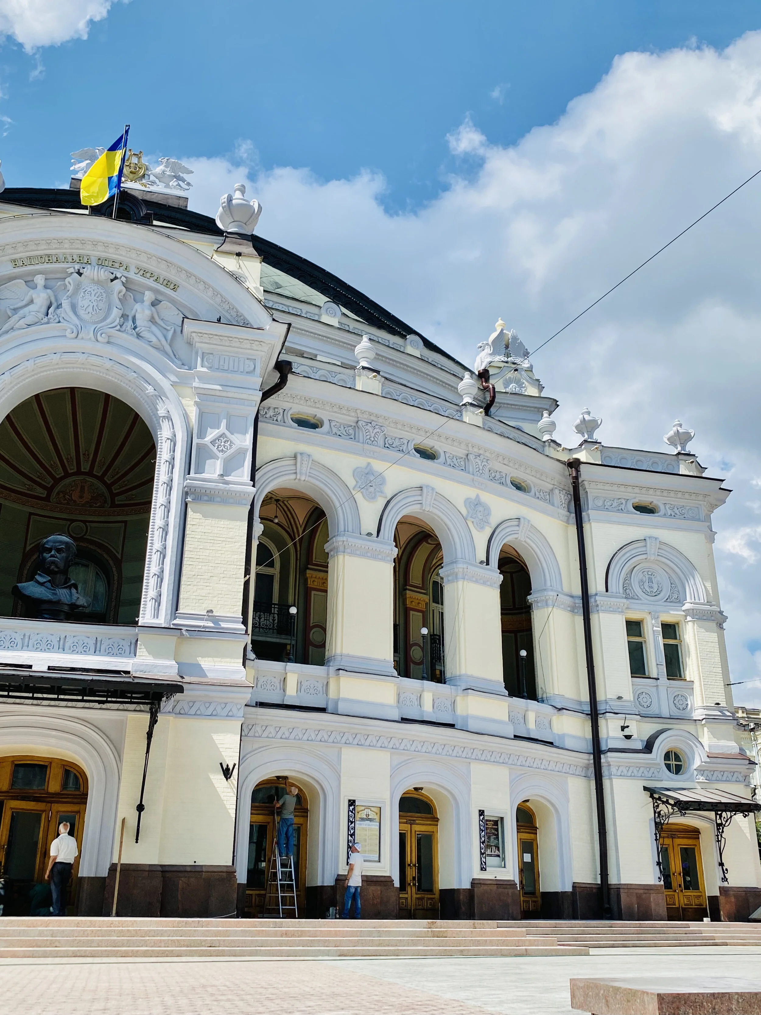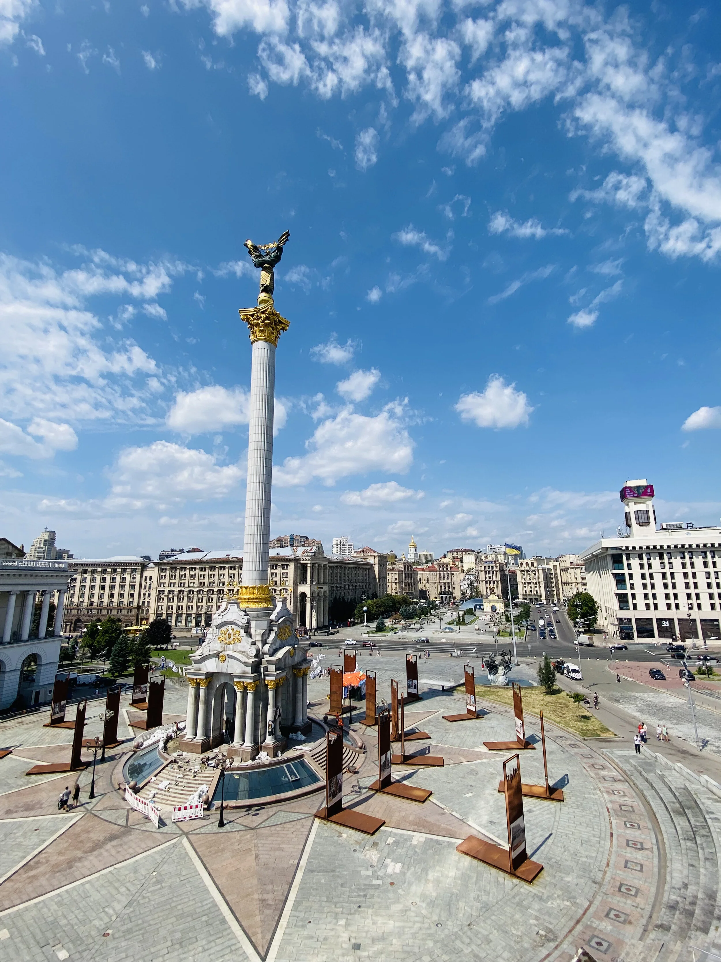 Khreshchatyk is the main street of Kyiv. The entire street was completely destroyed during World War II by the retreating Red Army troops and rebuilt in the neo-classical style of post-war Stalinist architecture. Nowadays its a wide street nice for having a walk and shopping